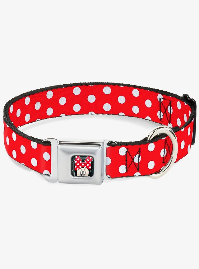 Disney Minnie Mouse Polka Dots Dog Collar Seatbelt Buckle Red White