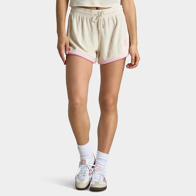 Playboy Bunny Logo Washed Denim Shorts / Light Grey