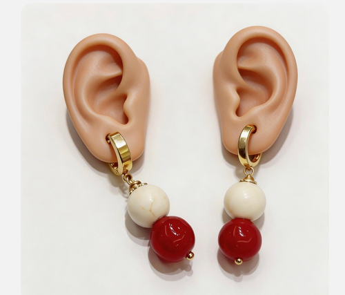 Blue Lapis Lasuli & Floral Porcelain Earring