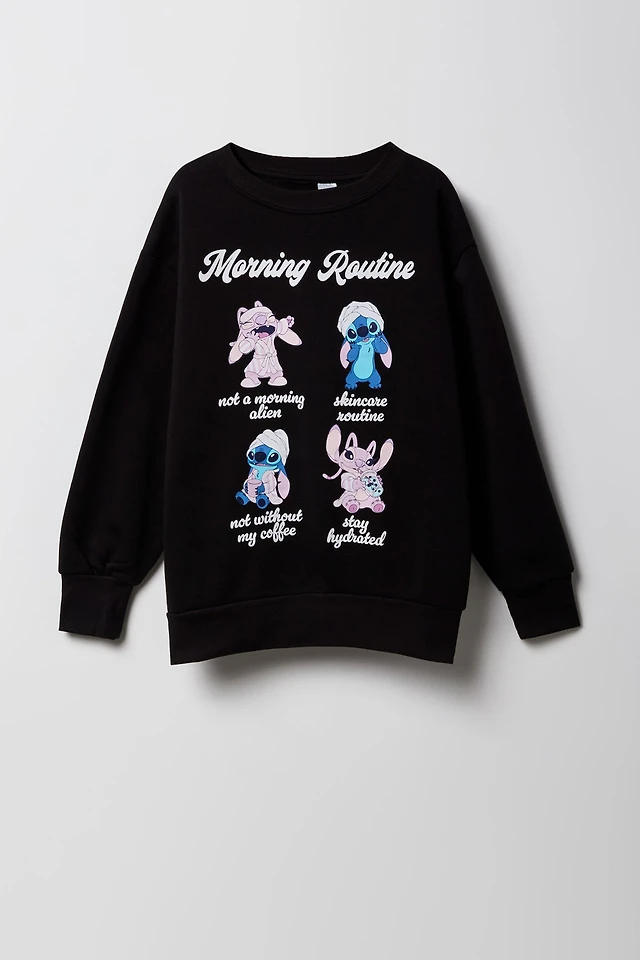 Girls Stitch & Angel Graphic Fleece Sweatshirt