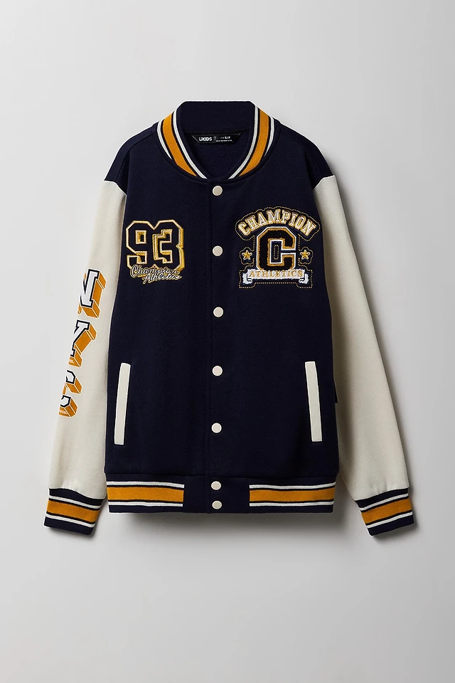 Boys Chenille Embroidered Fleece Varsity Jacket