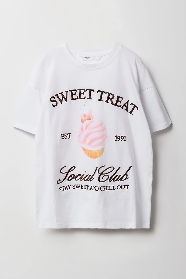 Girls Sweet Treat Embroidered Oversized T-Shirt