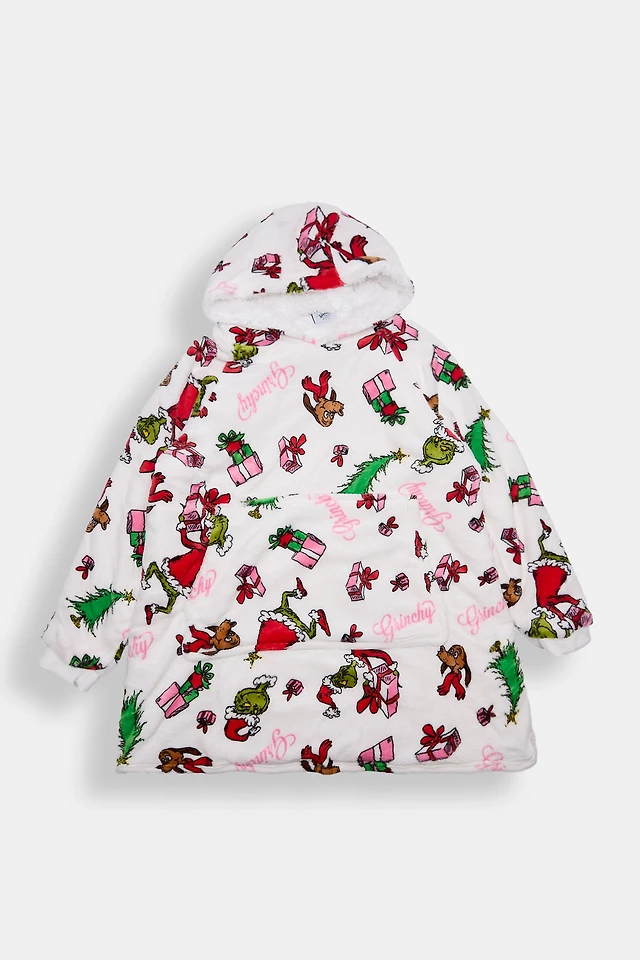 Girls The Grinch Presents Oversized Blanket Hoodie - White /