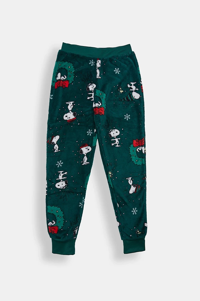 Girls Snoopy Wreath Plush Pajama Pant - Hunter Green /